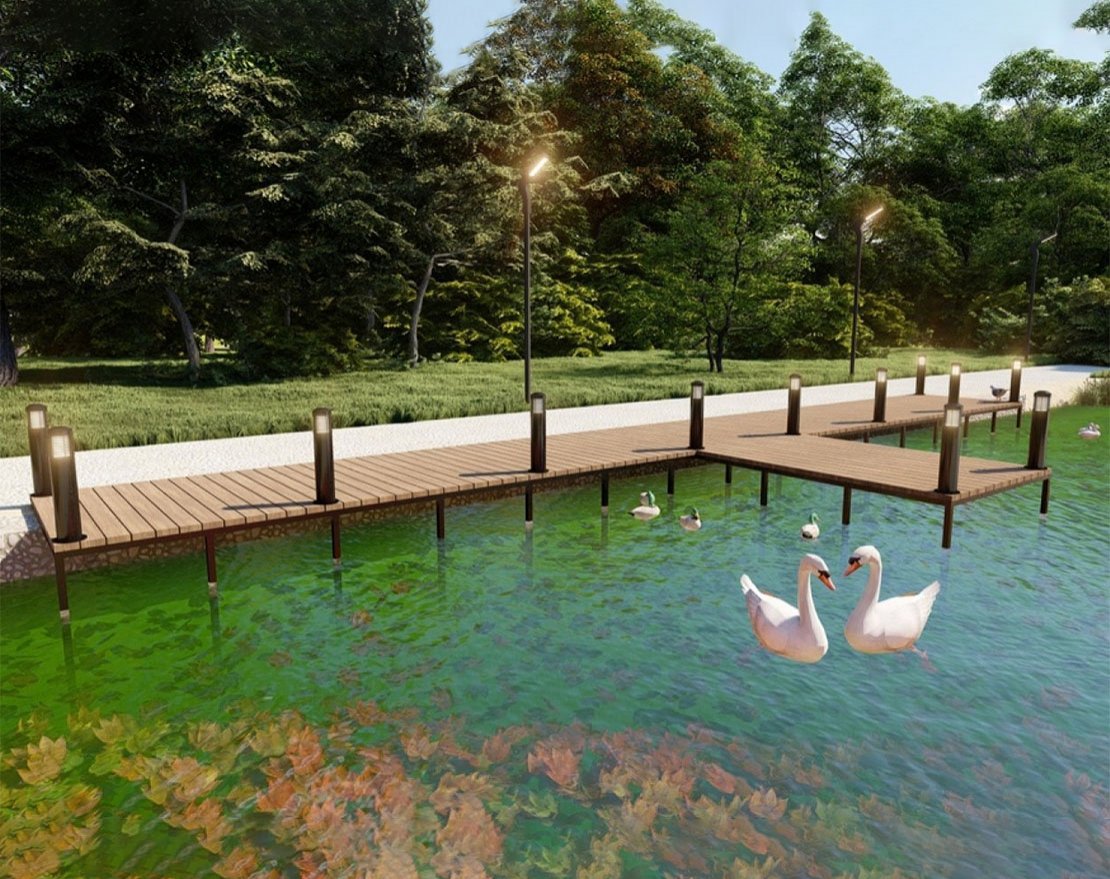 Пирс будет укреплен сваями, что обеспечит его стабильность и прочность.