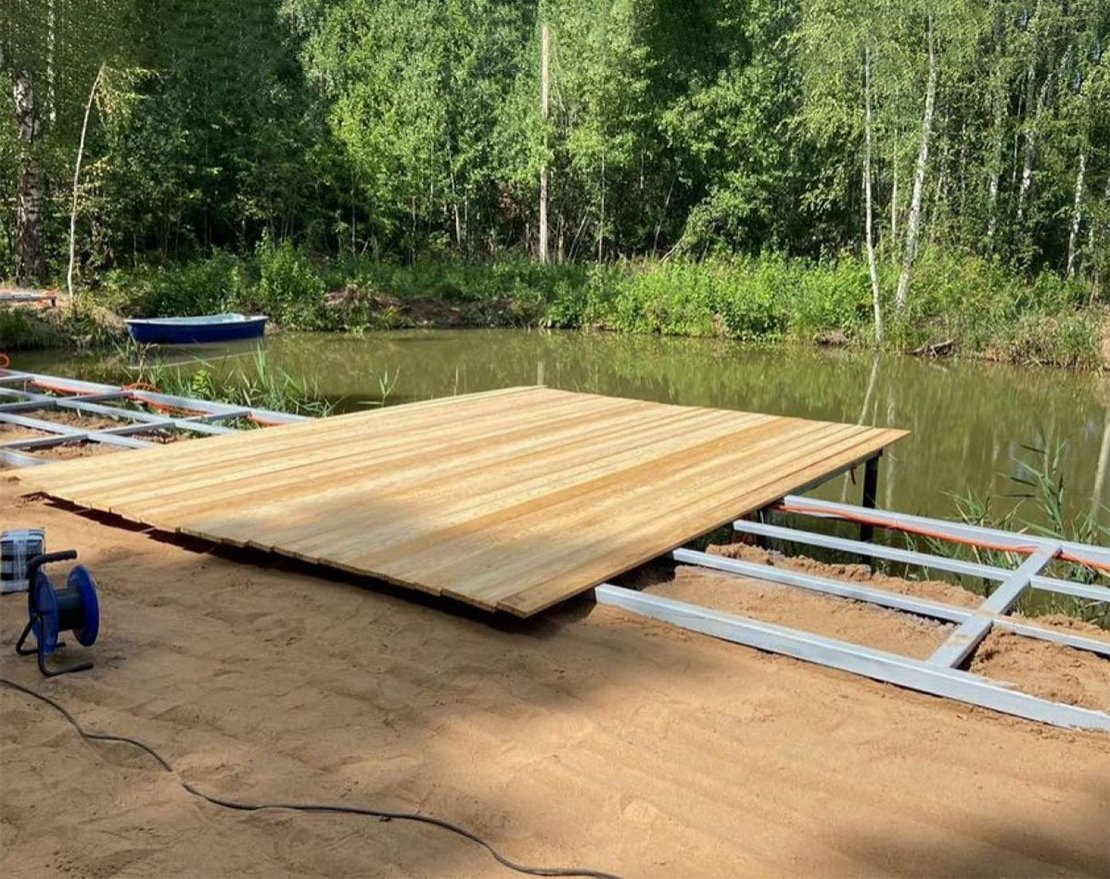 Деревянный пирс на металлическом каркасе обеспечит надежность и долговечность конструкции.